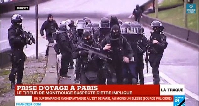 It means that two sieges by suspected Islamic terrorists are playing out at the same time, as fears grow that the terrorists would be looking to cause another bloodbath. The gunman in Vincennes is believed to be the one responsible for shooting a policewoman dead in south Paris on Thursday, said police sources.